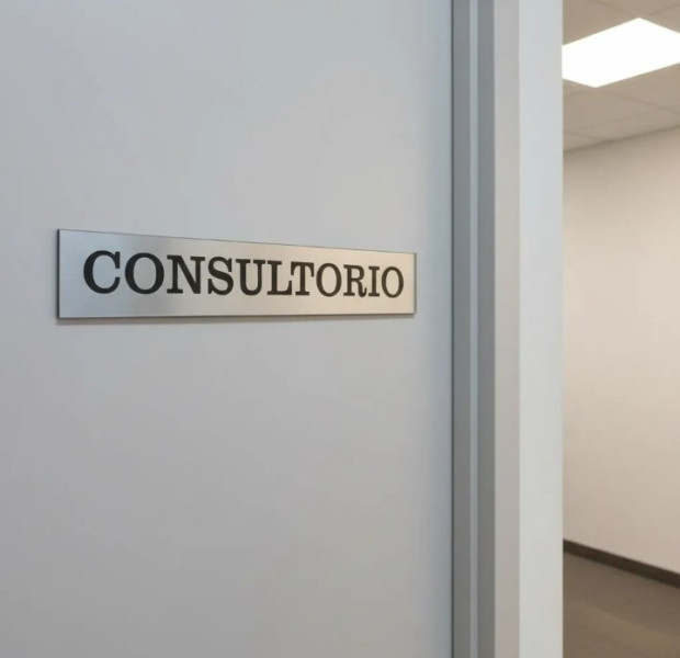 Cartel de 30x5 cm para indicar puerta consultorio, oficina, salas. En aluminio compuesto.
