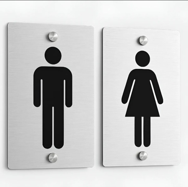 carteles de baño en aluminio compuesto con separadores metalico , 2 unidades de 15x10cm cada uno.