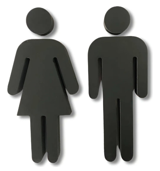 siluetas en polyfan de 2cm de espesor para puerta de baño. 2 unidades, 15cm de alto.